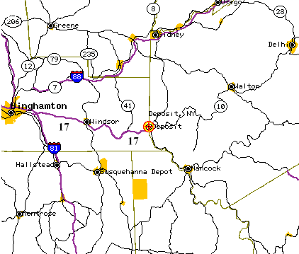 From the east on Route 17 Exit 83 - - turn left, continue 1/2 mile, then left at diner 2 1/2 miles to Scotts at Oquaga Lake.